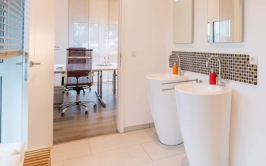 Die City Villa 5 ist durch ihre quadratische Form und außergewöhnlichen Aufteilung ein optischer Blickfang. Im Erdgeschoss finden sich offene Übergänge und im Obergeschoss eine Wellness-Oase.