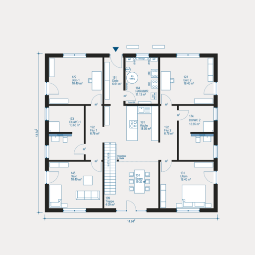 Unser Connect 2 ist ein vielseitiges Wohnhaus für Großfamilien oder Wohngemeinschaften. Auf einer Fläche von 332 m²