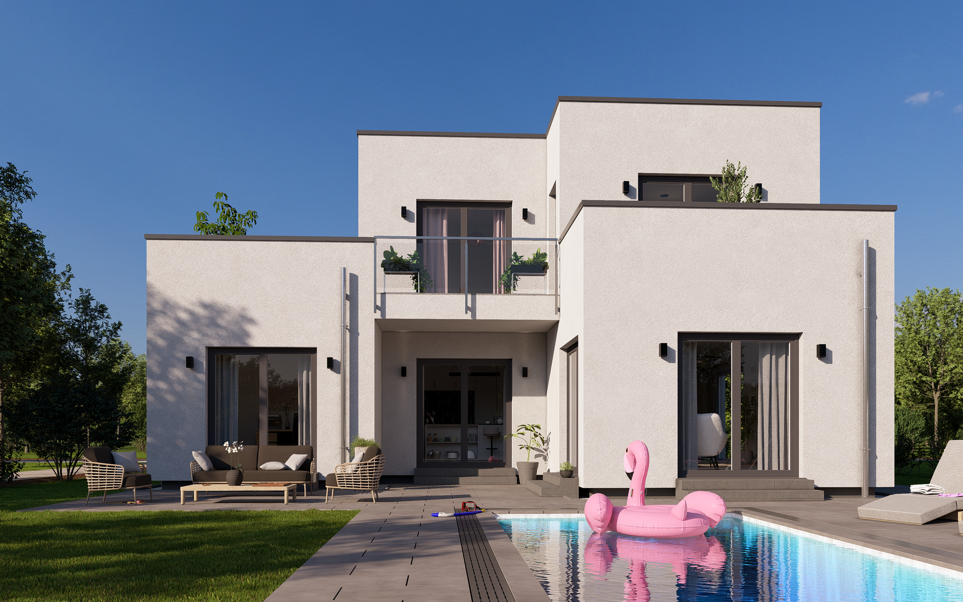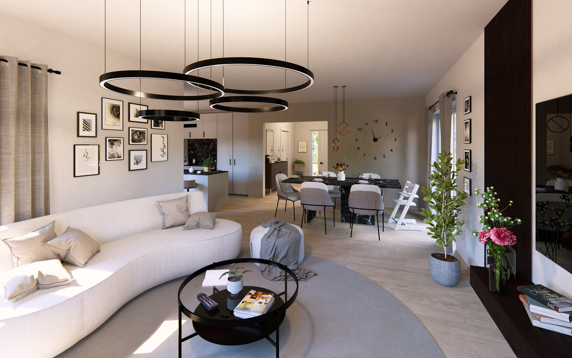 Unser Highline 1 vereint außergewöhnliche Architektur und großzügige Raumgestaltung. Nicht nur das moderne Flachdach macht dieses Haus zum Hingucker. Ein Wohlfühltraum auf fast 223 m².