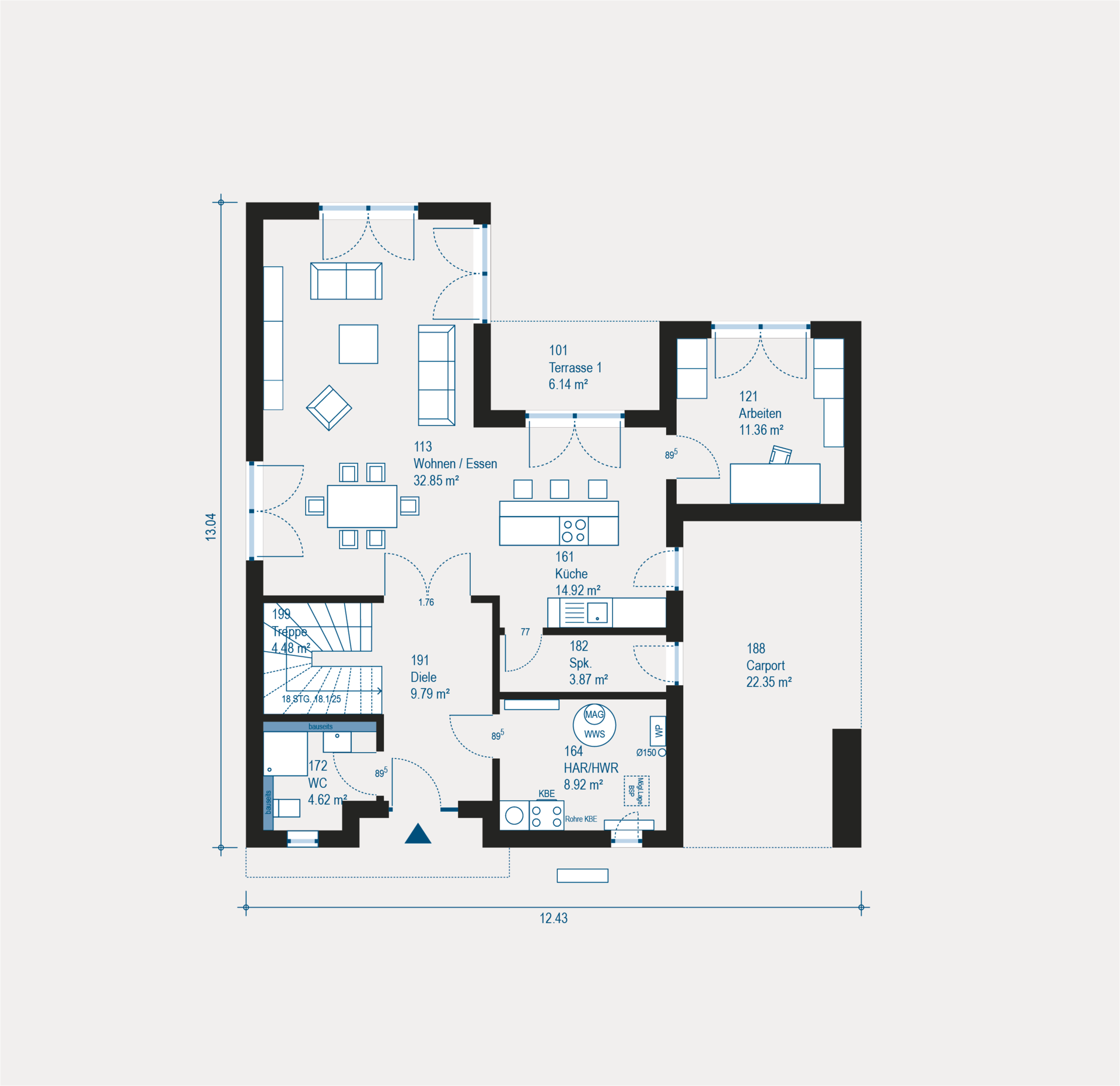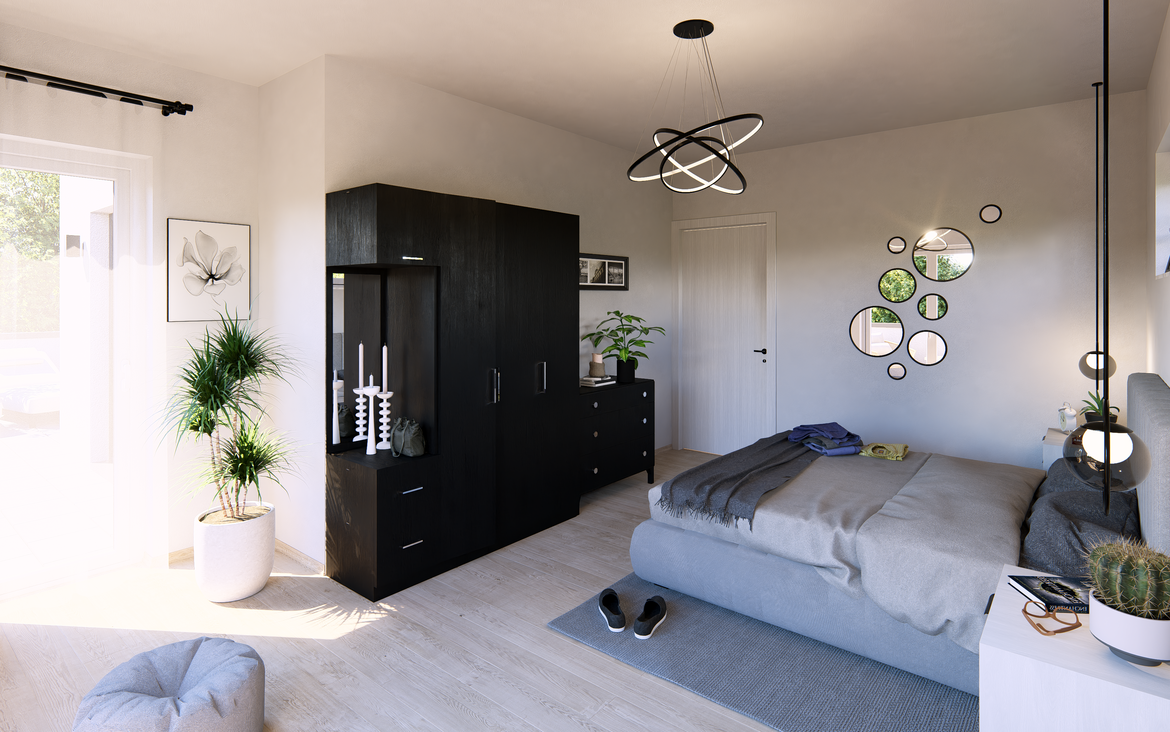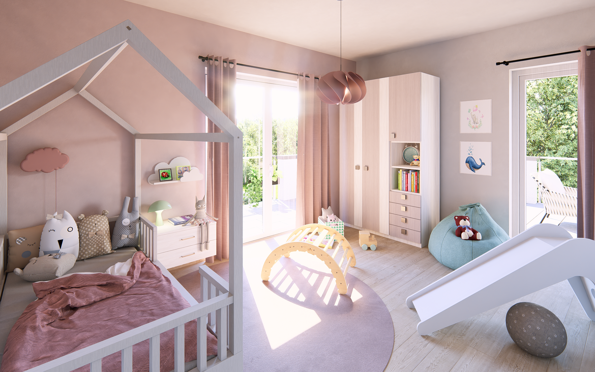 Das Obergeschoss mit 125,35 m² ist ein echtes Highlight: Zwei Kinderzimmer teilen sich einen großen Balkon, während das Elternschlafzimmer über einen eigenen Balkon verfügt. Hinzu kommt ein großzügiges Wellnessbad, das keine Wünsche offenlässt. Insgesamt stehen dir hier gleich zwei große Balkone zur Verfügung, auf denen du jederzeit frische Luft und Ausblicke genießen kannst.