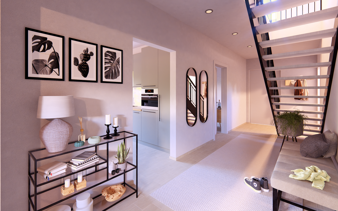 Im Erdgeschoss überzeugt das Highline 4 mit einem großzügigen Wohn-, Ess- und Kochbereich, der durch Offenheit und Helligkeit besticht. Ergänzt wird das Raumkonzept durch ein Arbeitszimmer mit direktem Terrassenzugang, eine praktische Ankleide und ein zusätzliches Bad. Im Obergeschoss erwarten dich zwei Kinderzimmer mit eigenem Bad, ein weiterer Arbeitsraum sowie der exklusive Elternbereich mit Ankleide und Wellnessbad – perfekt für Familien, die Komfort und Stil vereinen möchten.