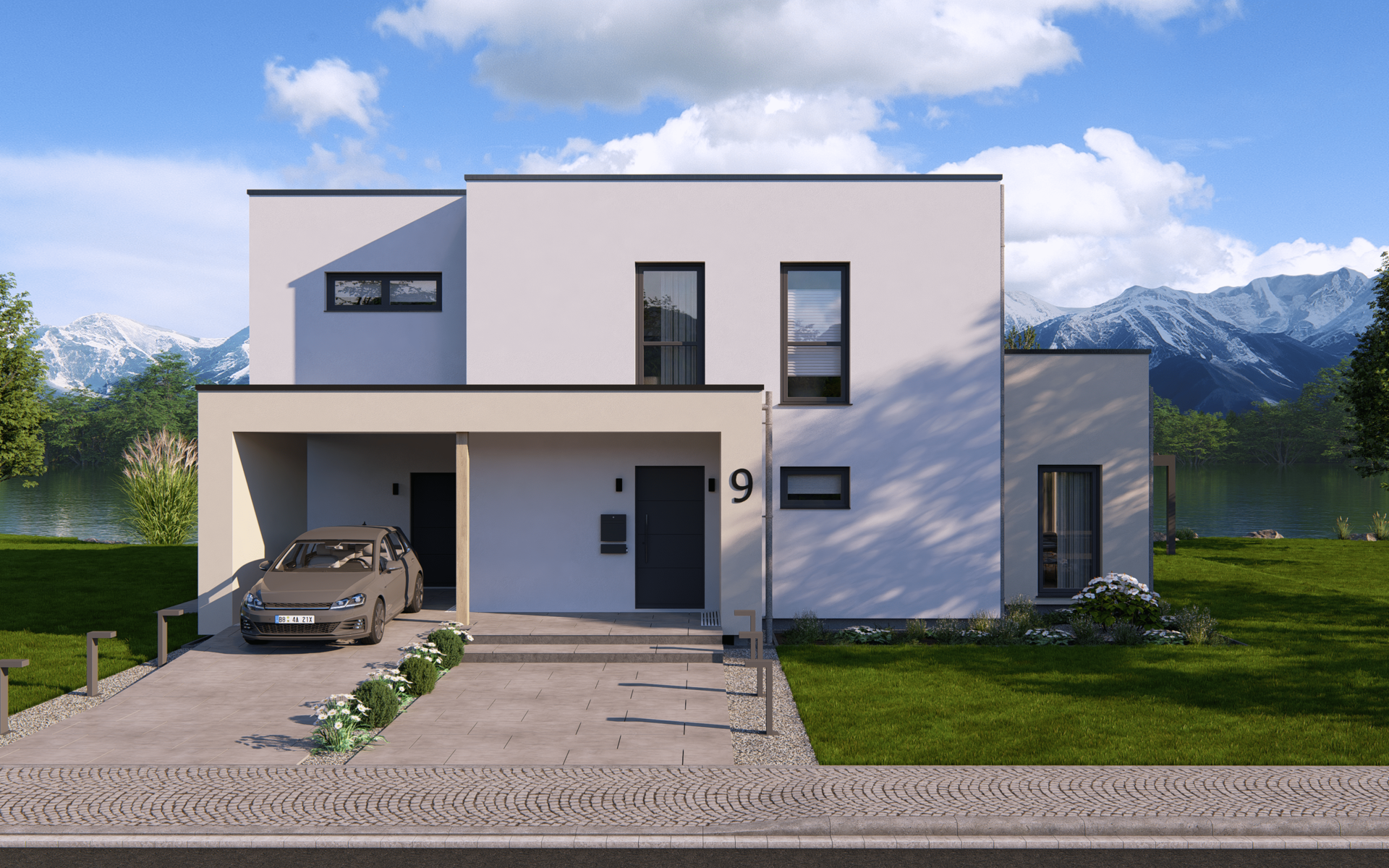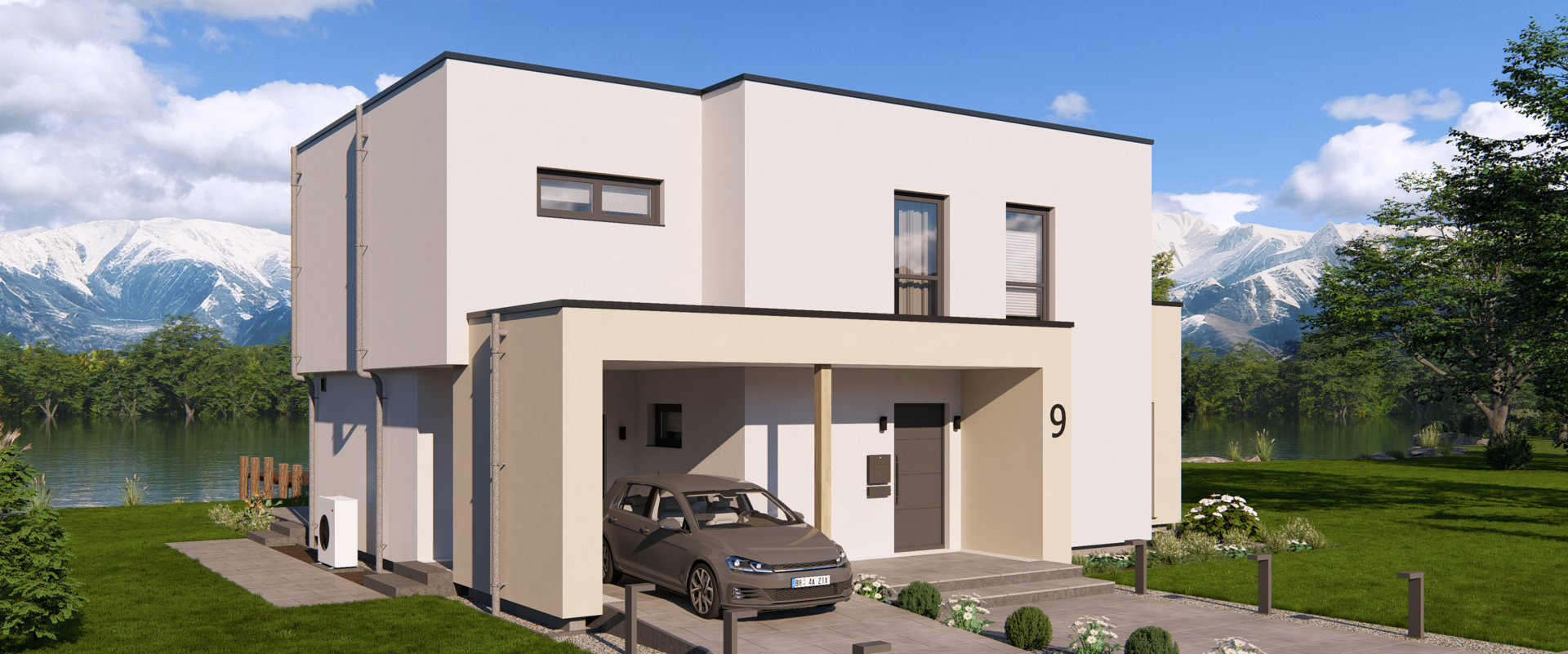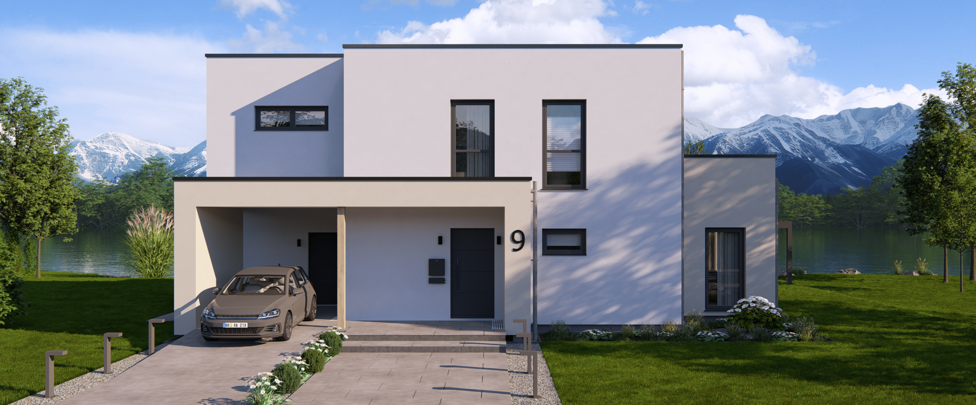 Das Highline 9 im Bauhaus-Stil kombiniert markante Architektur mit einer intelligent geplanten Raumaufteilung. Im Erdgeschoss erwartet dich ein weitläufiger Wohn-, Ess- und Kochbereich, ergänzt durch eine abgetrennte Speisekammer, ein Arbeitszimmer und ein Gäste-Bad – ideal für vielfältige Lebenssituationen.