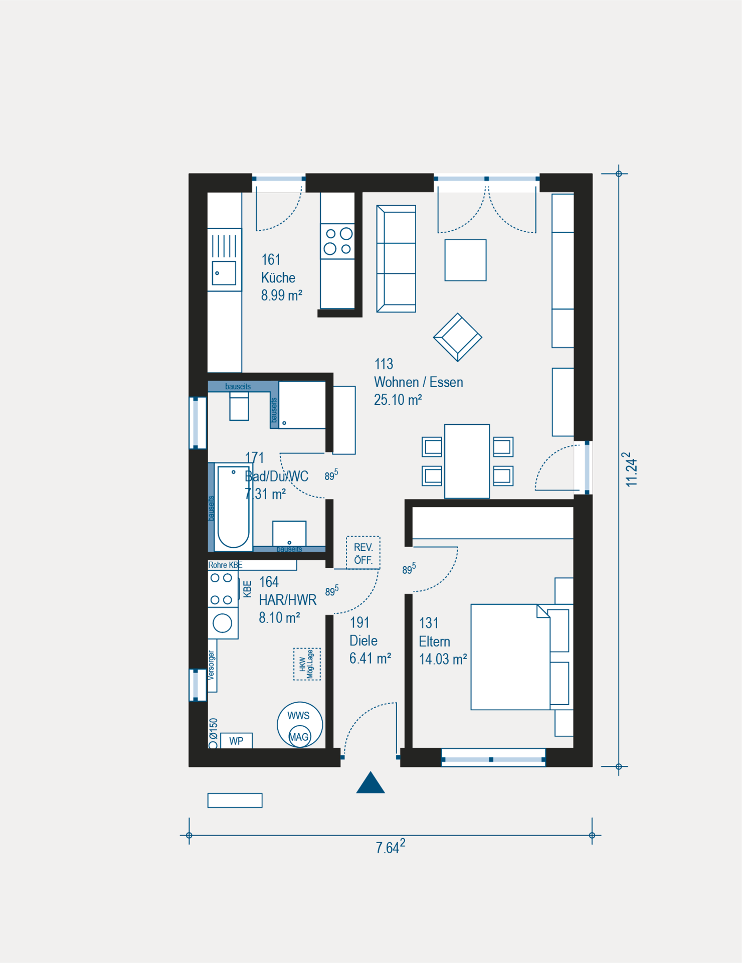 Kompaktes Wohnen auf einer Ebene. Unser Lifetime 6 bietet mit fast 70 m² auf einer Ebene jede Menge Platz sich zu entfalten – überschaubar wie eine Wohnung und doch unabhängig. Ein Blick auf den Grundriss zeigt: Hier ist an alles gedacht. Der großzügig geschnittene Wohn-/Essbereich und die halb offene Küche ermöglichen eine abwechslungsreiche Inneneinrichtung. Das Tageslichtbad und das geräumige Schlafzimmer, welche beide über den großzügigen Flur zu erreichen sind, tragen ihren Teil zum gemütlichen Wohnambiente bei. Dieses Haus ist ideal für kleine Grundstücke geeignet!